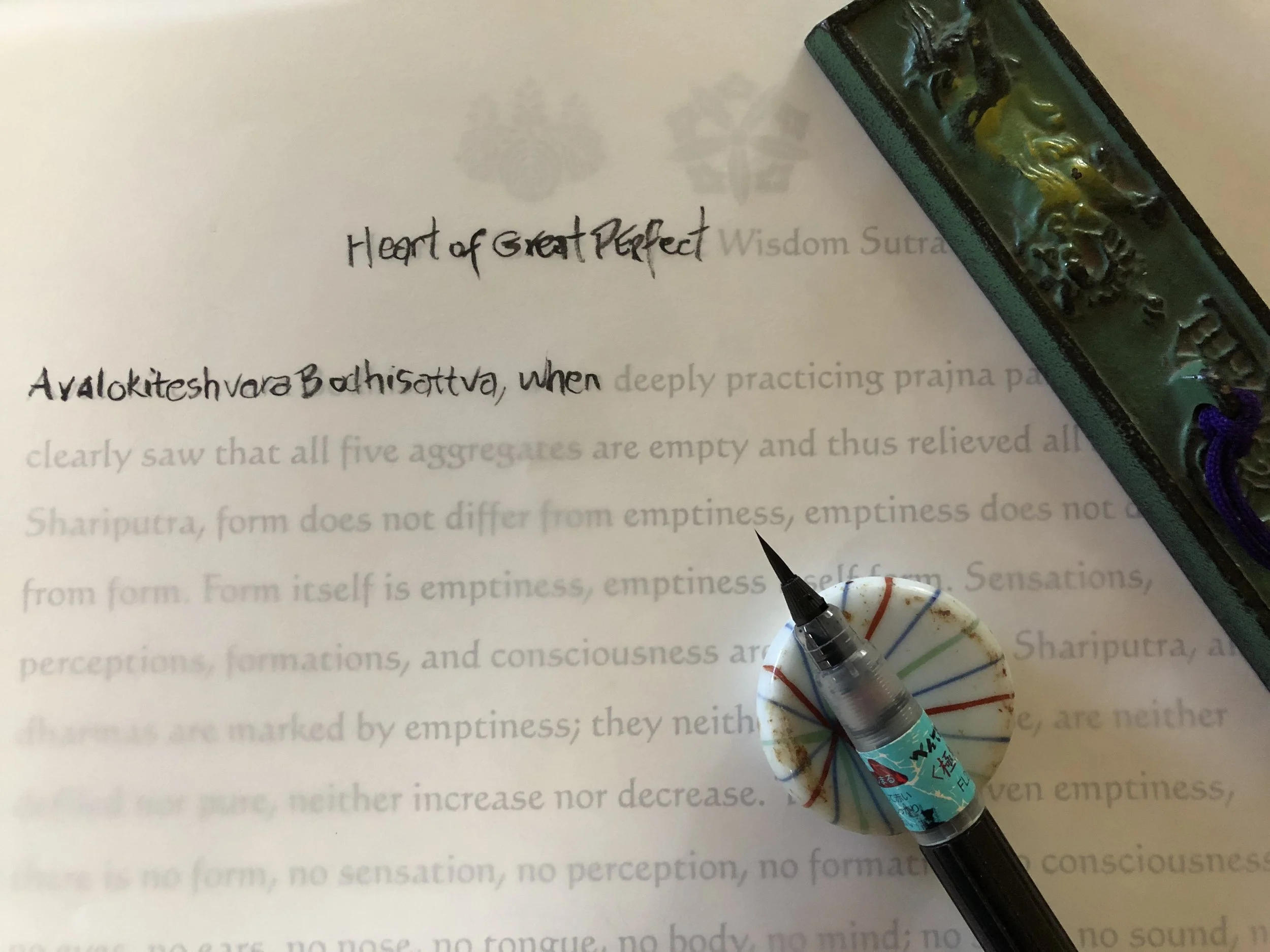 The ancient practice of tracing the sutras (Buddhist texts) by hand with care and awareness is a form of meditation. Sitting down to copy a sutra, we sit down with ourselves and bring a kind and welcoming mind to our efforts – whether our handwriting is good or not, whether we make mistakes or not. We can also dedicate our practice to others, if we choose.